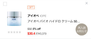 IOPEの基礎化粧品セットを選ぶとセットの中に水分クリームも入っているので、わたしも毎年更新するときにIOPEの基礎化粧品セットを選ぶようにしています(^ω^)